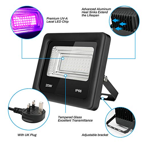 Luckits LED BlackLights 20W IP66 (85V-265V AC) Waterproof Ultraviolet Outdoor LED Spotlights DJ Disco Light for Party Disco Garden Bar Christmas