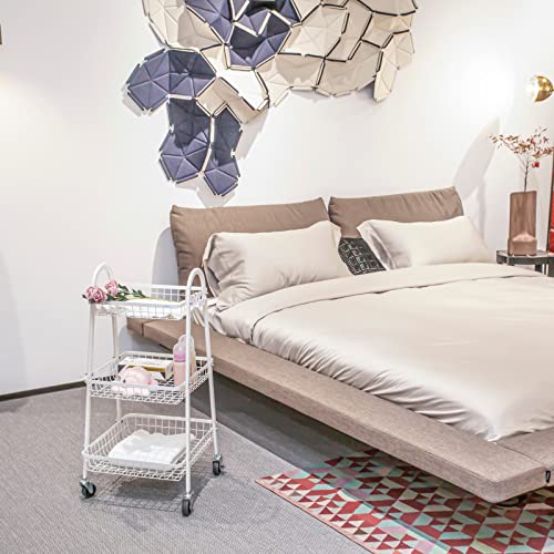 - [storage trolley on wheels] The overall load capacity can reach up to 60 kgs and it is great to hold a wide variety of items. It’s equipped with 4 high-quality casters and can be easily pushed, even under full load. Make your daily life simpler with the awesome rolling cart storage trolley