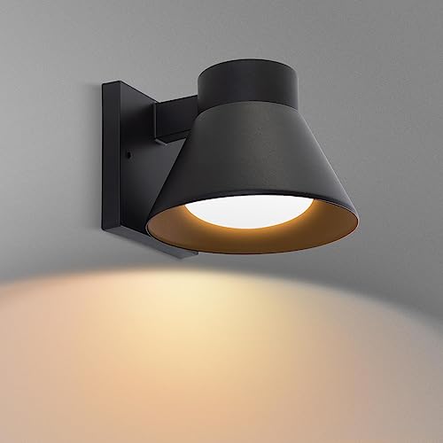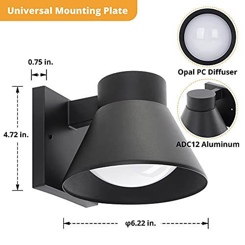 - 【Weather Resistant】Our black led wall light is constructed with heavy-duty aluminum and plastic, not rusty and corroded. And the conical lampshade design is not easy to accumulate water, suitable for any weather conditions like cloudy, heavy rain, snow, icing, hot weather, etc.