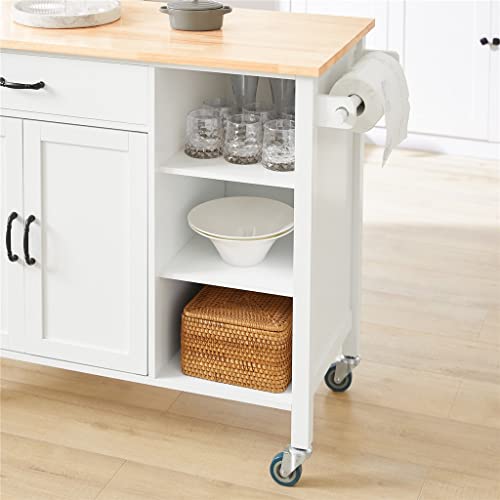 Home Kitchen Furniture MIAOHY Design Kitchen Trolley with Worktop Kitchen Island Kitchen Cabinet Trolley Sideboard on Wheels White Natural