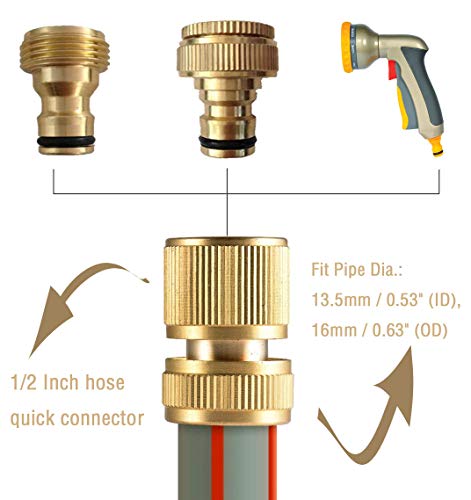 - Size: Quick connector fits with 1/2"inch DN15 Hosepipe (OD 16mm)